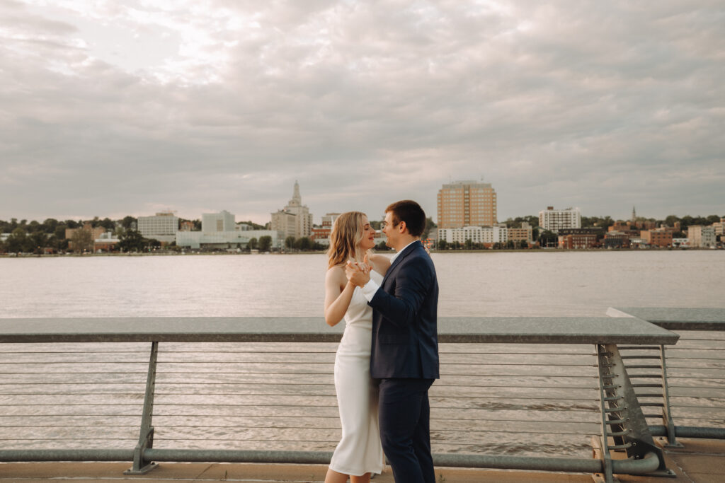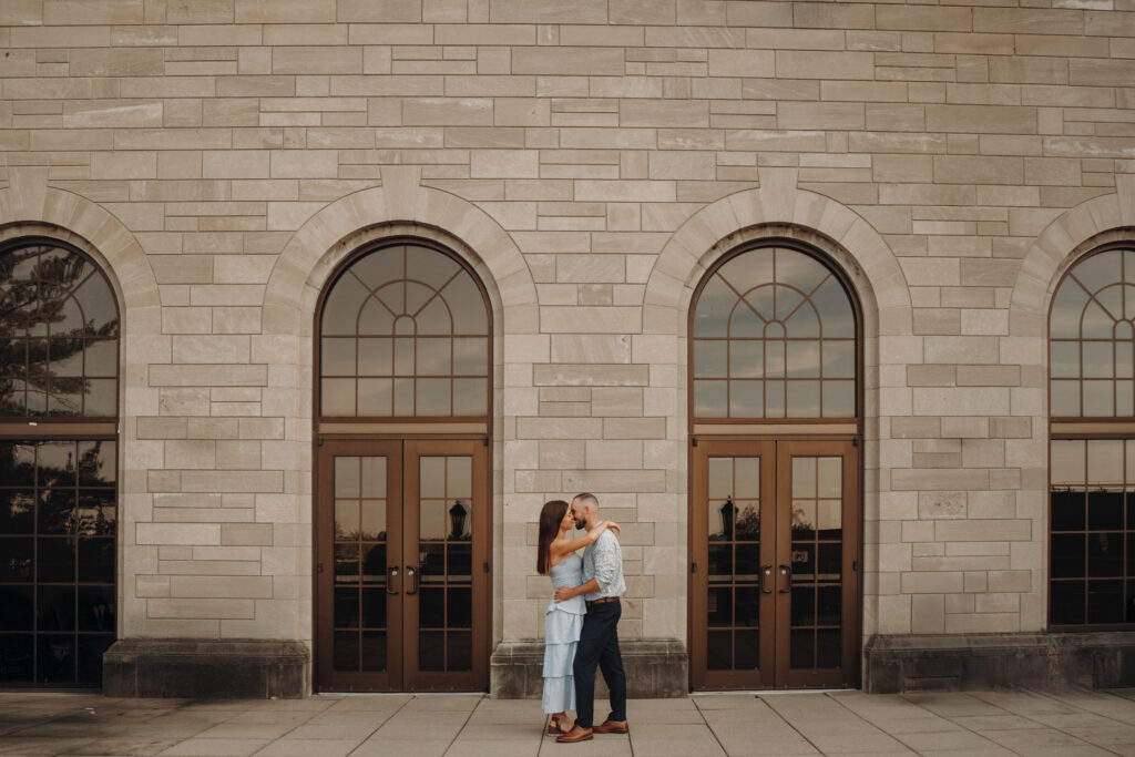 Downtown Davenport & Mississippi Riverfront Brick buildings, open sidewalks, and river views make downtown Davenport one of the most versatile engagement photo areas in the Quad Cities. This location works year-round and offers a wide variety of backdrops without requiring long walks.