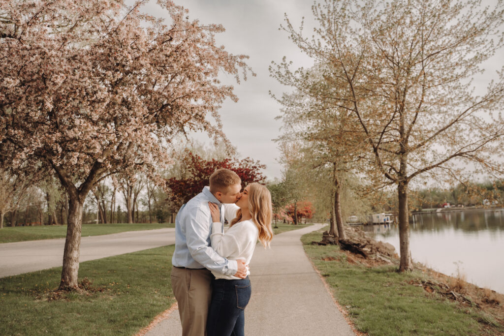 Spring Engagement Photos Downtown Davenport, LeClaire, The Sunset Marina, The Butterworth Center and Longview Park photograph beautifully in spring as greenery returns and temperatures are comfortable.