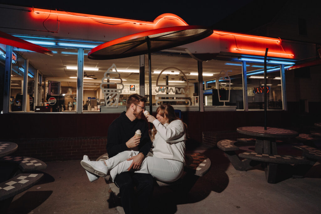 LeClaire, Iowa Historic storefronts, river views, and walkable streets make LeClaire one of the most consistently photographed engagement locations I use. Golden hour light here is especially strong.