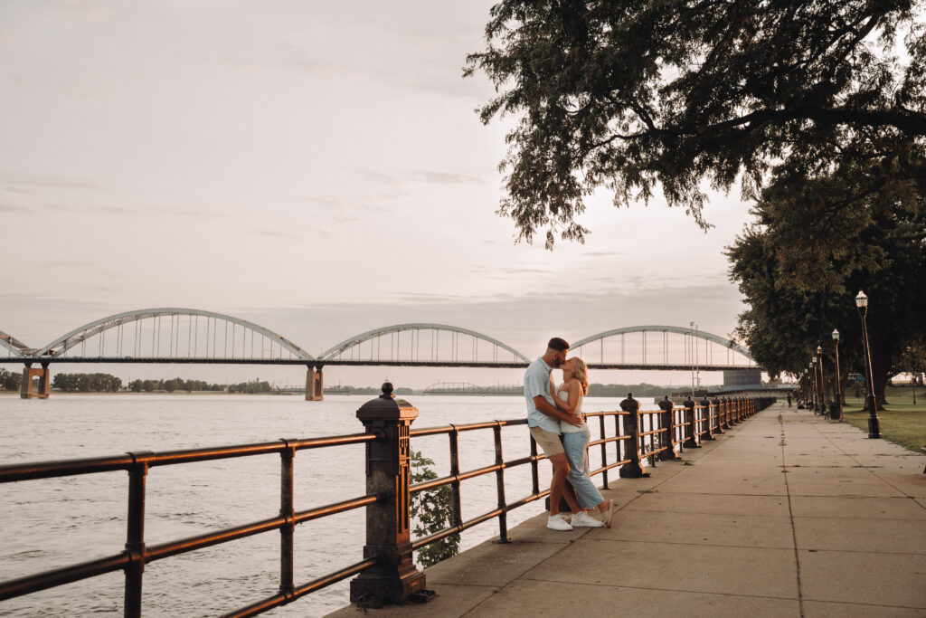 What time of day is best for engagement photos in the Quad Cities? Golden hour is typically the most flattering, but timing depends on the location, season, and light direction.