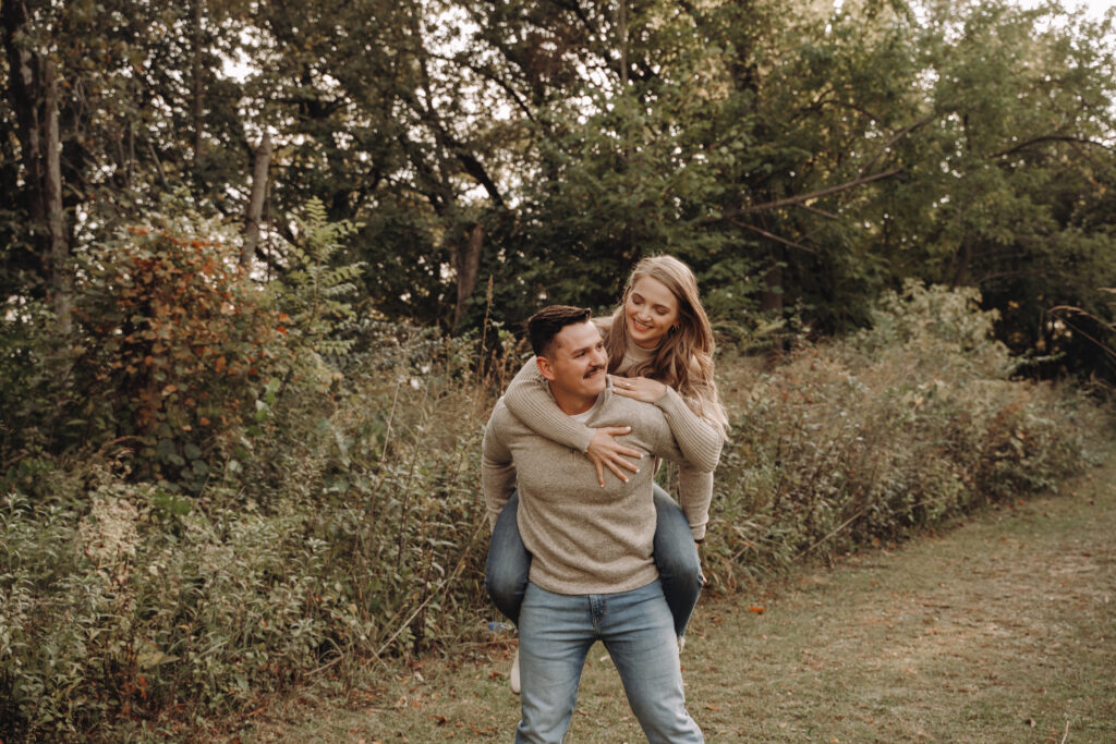Fall Engagement Photos Black Hawk State Historic Site, Augustana College, and Sunset Park are especially popular for fall engagement sessions.